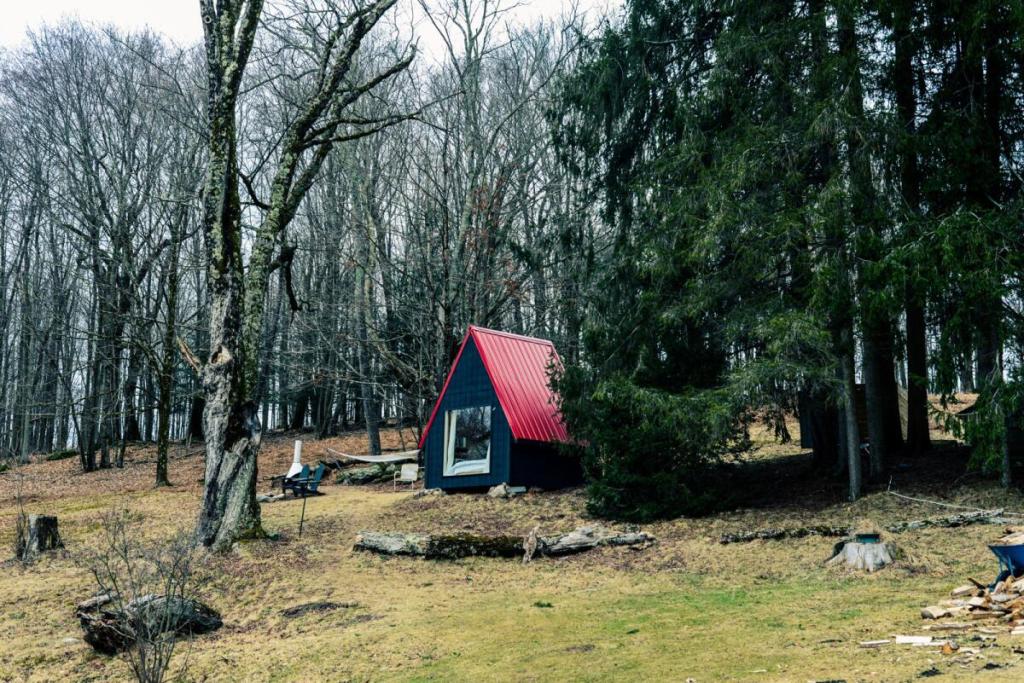 As was the intent with this destination, accomodations were rustic sans running water but still an upgrade to traditonal camping thanks to a very cool top of the line compost toilet, which is a 21st century upgrade to the traditional outhouses found in the cabins of my youth. The compact but powerful electric heater does a great job adding cozy to the space and the provided provisions met our needs as promised. The mini-kitchen was stocked with basic condiments and utensils and propane griddle is provided as well if cooking is desired, as is a fire pit and an outdoor fireplace if you favor cooking over a wood fire as we do. An electric kettle, french press and coffee were also provided which was greatly appreciated by my caffiene addiction, as was a small microwave oven if the above alternatives don’t meet your needs. With plently of stores nearby as well, including an Ace Hardware, Walgreens, multiple liquor stores, a craft beer store and a full supermarket, all of which are at most a 15 minute drive from the property With strong Cell phone signals all around your degree of grid presence is at solely at your discretion.