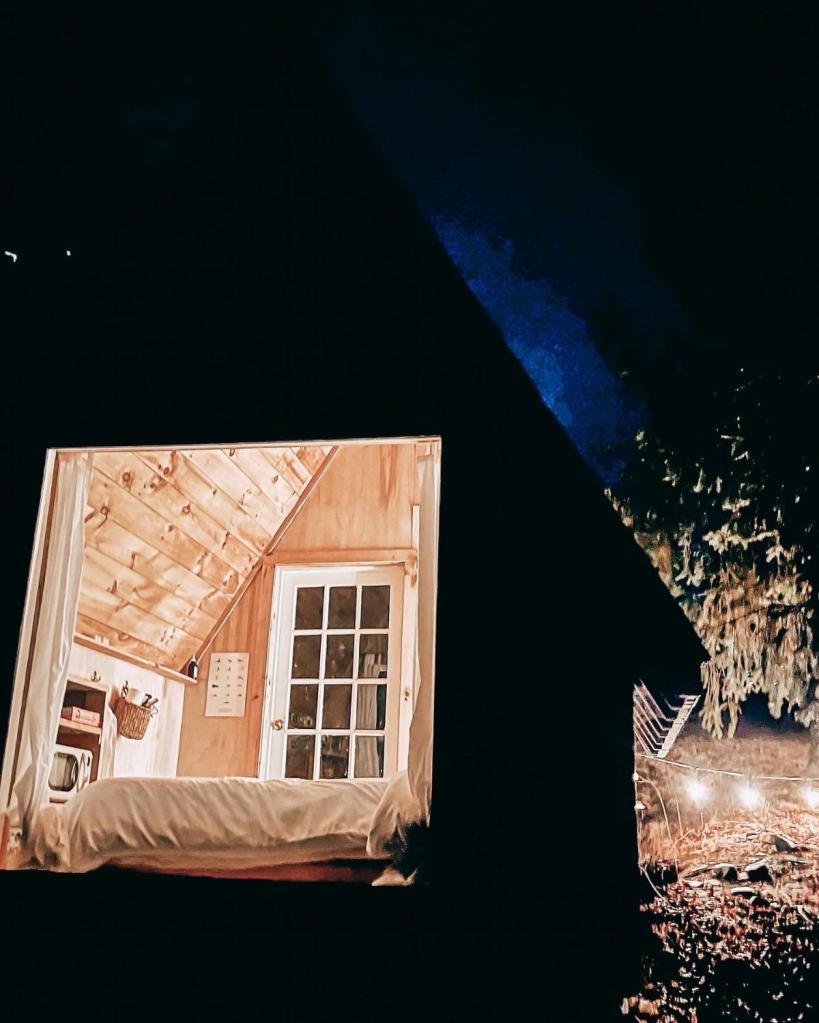As is the case with any travel experience, this one is anchored in the accomodations, which, in these parts, come in the form of 2 cabins: One, a quaint A-frame micro that sleeps 2 and the other, a slightly larger cottage featuring a queen bunk bed with a pullout couch and wood fired hot tub that sleeps as many as 5 in a pinch. I’m thinking that hot tub would also make a great “cold plunge” if desired (need to suggest that), there’s plenty of places around to buy ice and winter’s got you covered in that department during the colder months.. so that’s definitely an option if permitted.