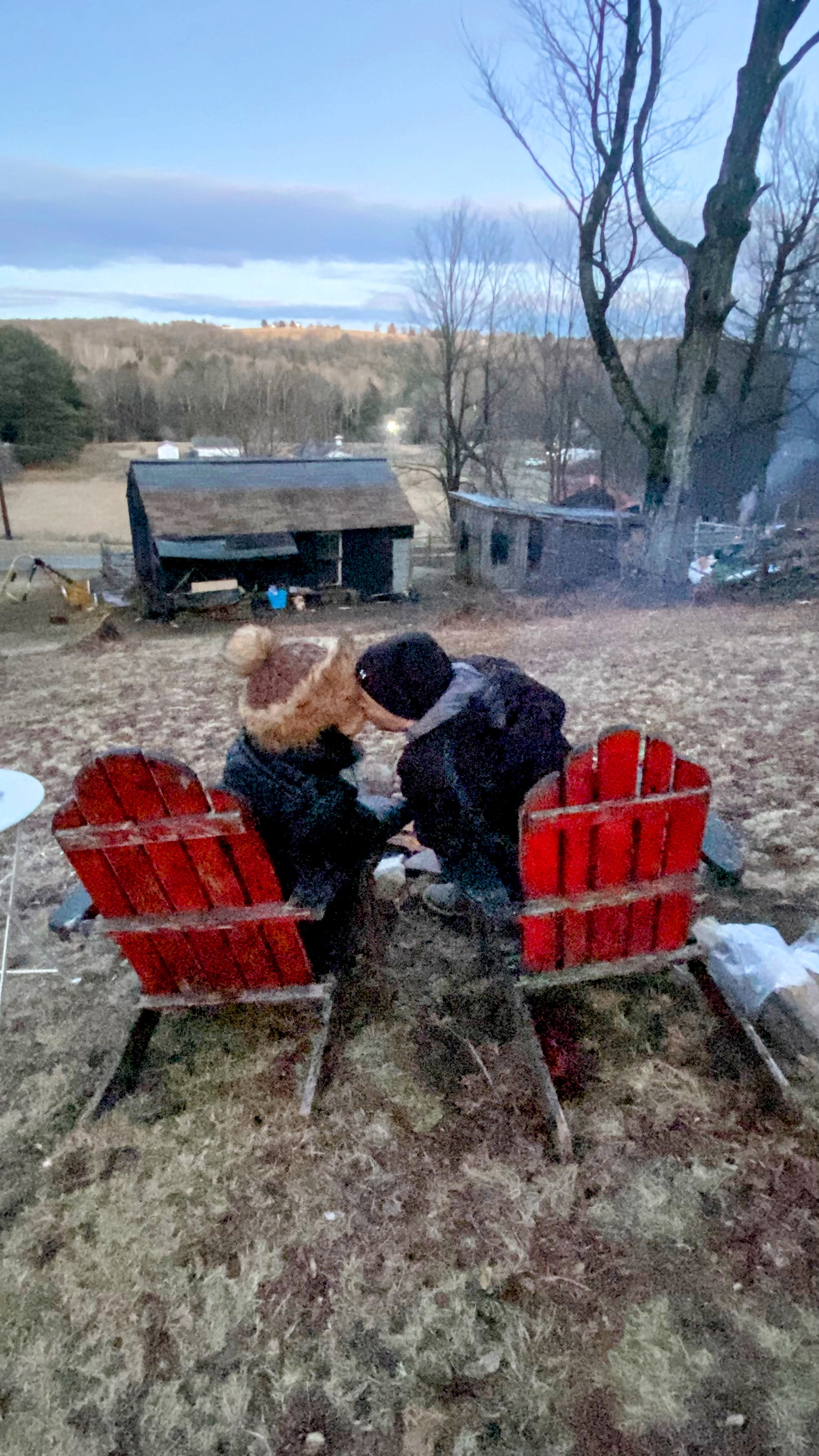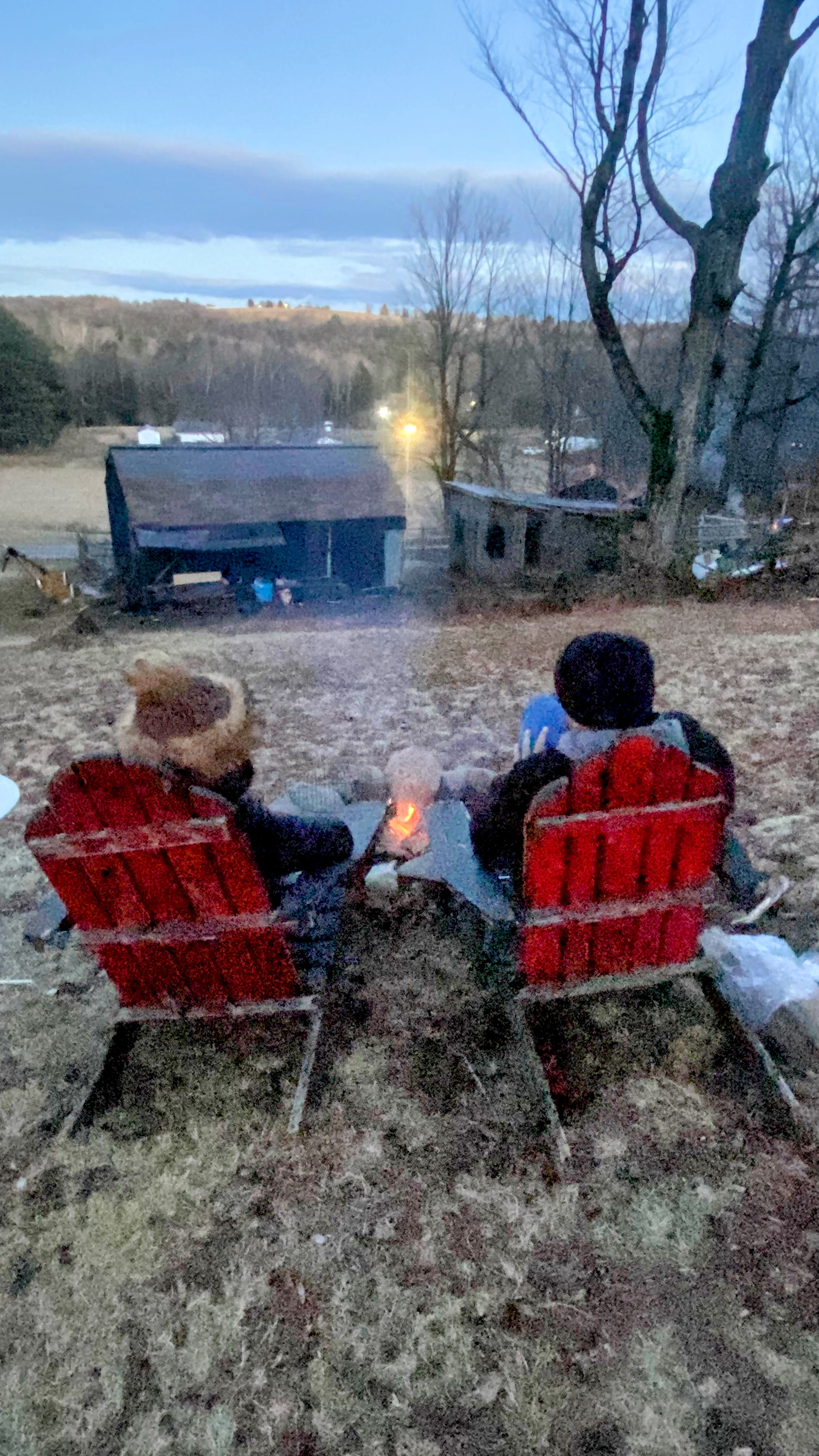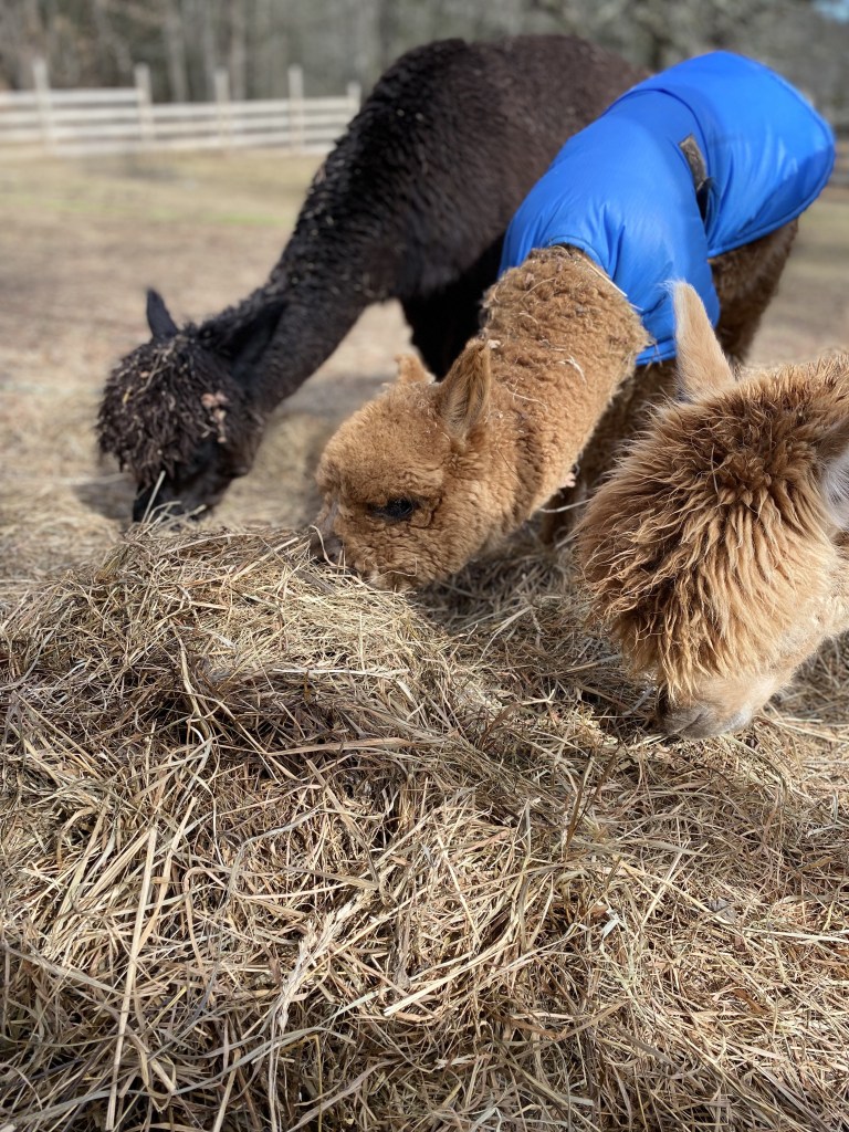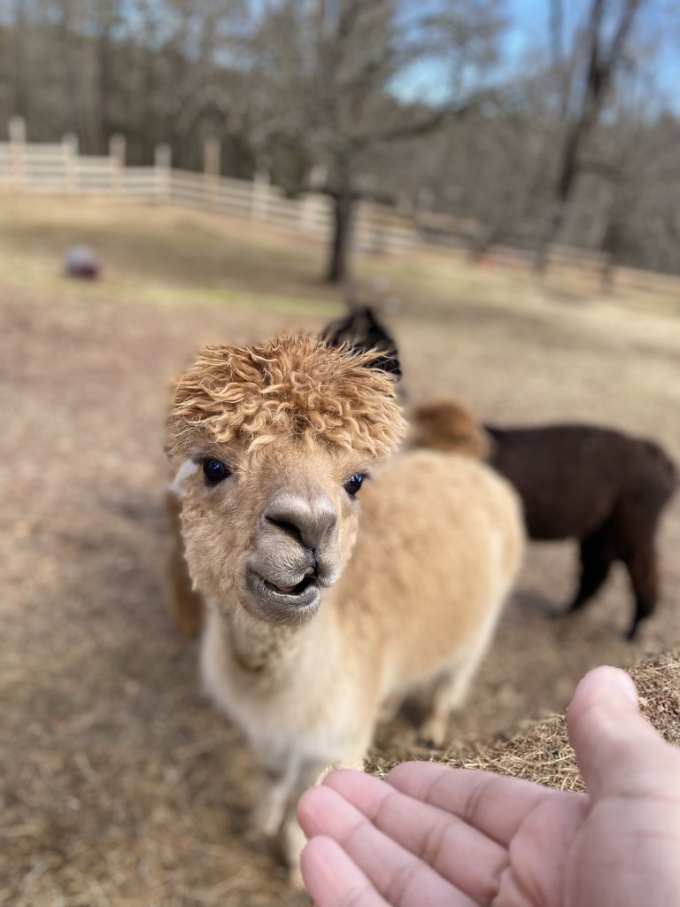 Jess and I enjoyed roasting pineapple slices under a spectacular star-strewn, Winter sky and a hike around the property, which, admittedly covered only a small fraction of the large property, partially due to Jess’ crush on the 5 Alpacas which were the focal point of our visit (Maybelline, Fiona, Midnight Sky and babies,Thunder and Bambi) that live in close proximity to the cabins. We also enjoyed the creek which runs through the property, where Jess led a mediation which was so effective that I fell asleep!